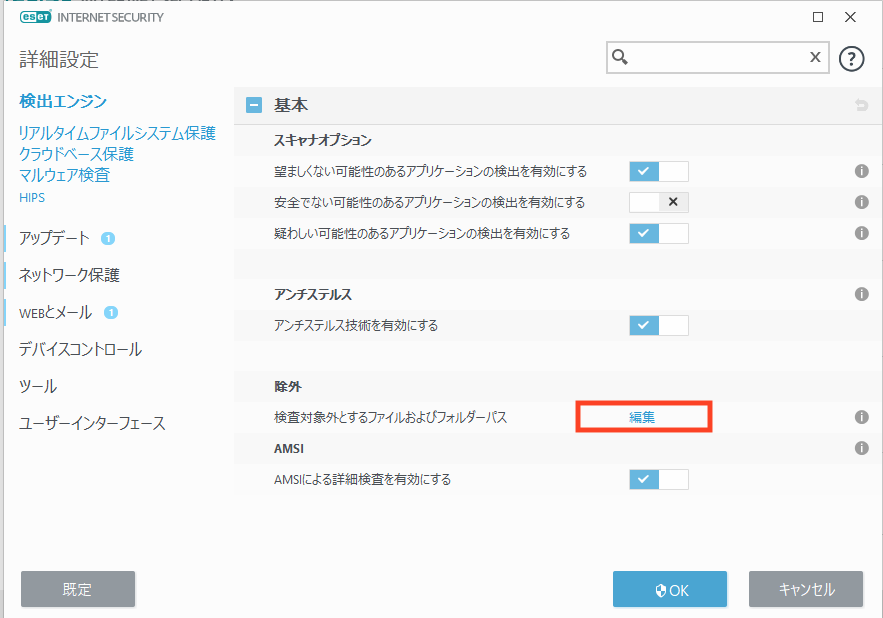 代表的なアンチウイルスソフト2点を使用した除外設定の方法を記します。