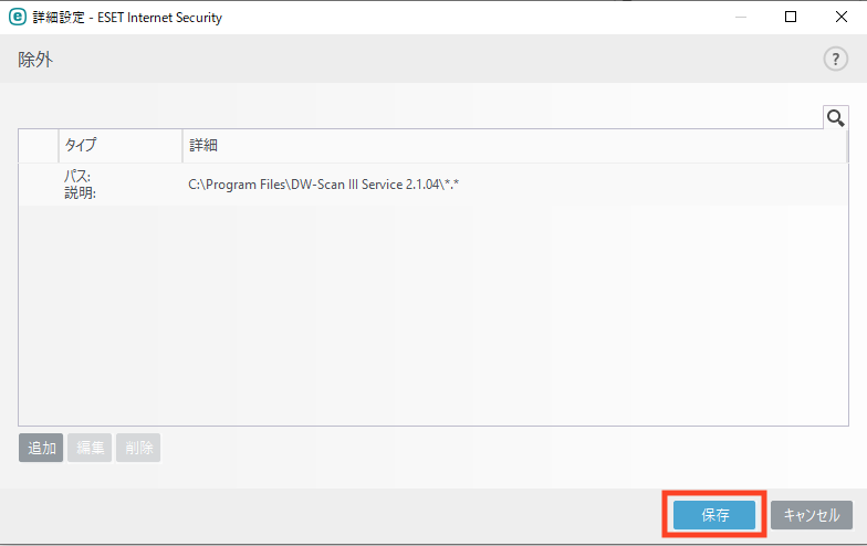 (6)除外指定が追加されたことを確認し、「保存」ボタンをクリックします。